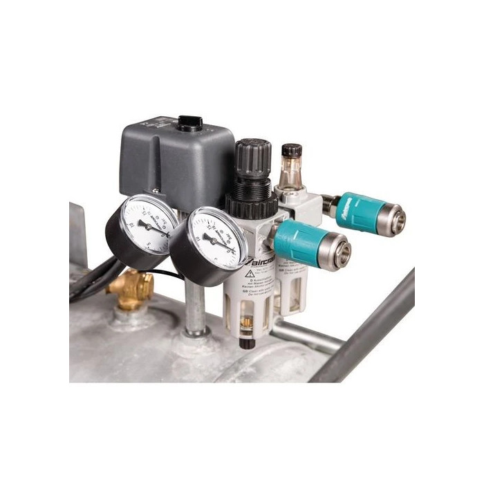 Има филтър за регулиране на налягането с едновременно отделяне на мръсотия, масло и кондензат.