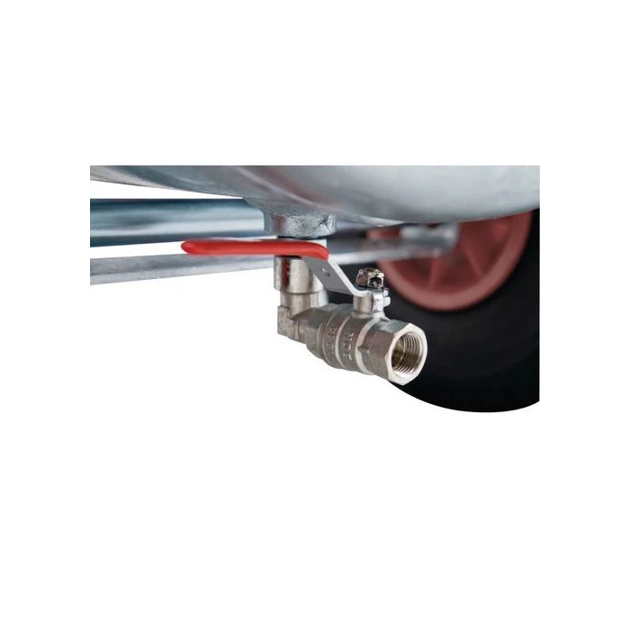 Пневматичните гуми и широкото междуосие осигуряват безопасно и удобно предвижване на компресора.