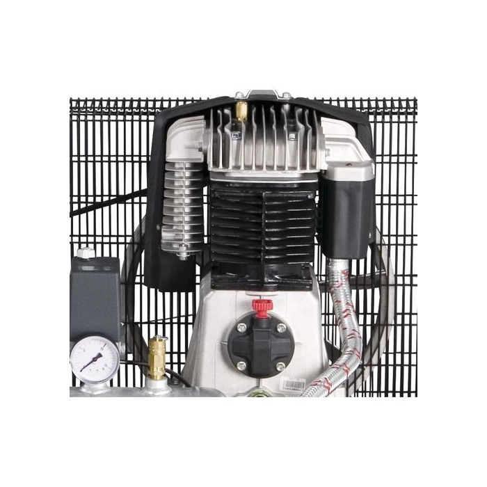 Голямата перка на вентилатора и охладителната въздушна преграда на цилиндъра осигуряват достатъчно охлаждане на компресора.