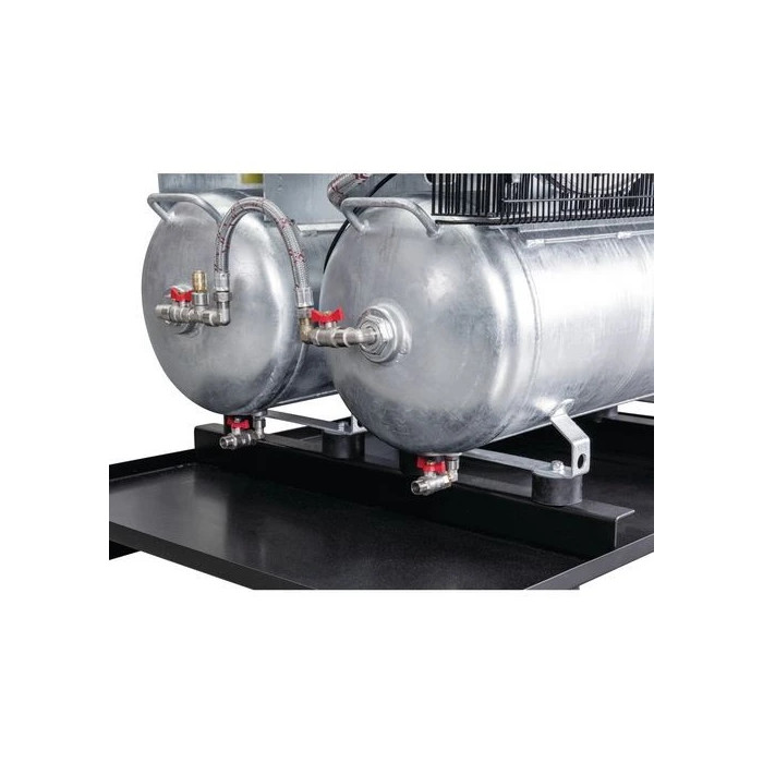 Има един охладител с големи перки и осигурява ниска температура на входа на резервоара и по-малко влага в сгъстения въздух.