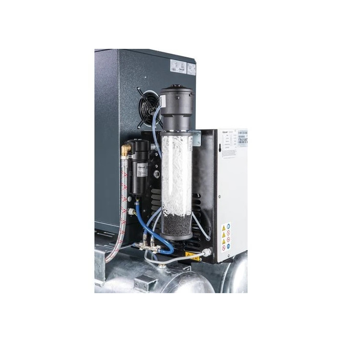 KK версия като стандарт с автоматичен уловител за пара за надеждно и икономично изхвърляне на кондензата без ненужна загуба на сгъстен въздух K и KK версия с хладилна сушилня стандартно с точка на оросяване при температура 3 ° C, температура на околната среда 25 ° C
