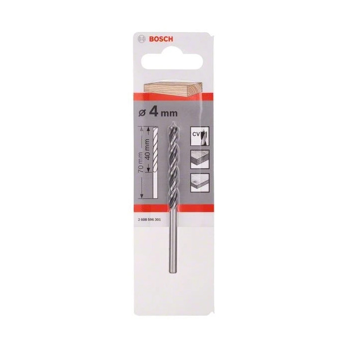 дървени материали. Свредлата на Bosch са с центриращ връх и опорен режещ нож.