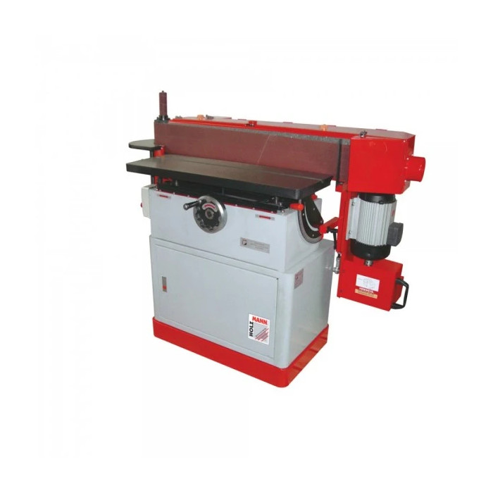Тежка индустриална шлайфмашина за обработка на различни материали. Конструкцията на шлайф машината е масивна за работа без вибрации. Масата на машината се регулира във височина чрез удобна ръкохватка. Алуминиевият корпус на електродвигателя на шлайфа спомага за бързото отвеждане на топлината. Осцилиращата функция на лентовия шлайф спомага за постигане на перфектна обработена повърхност Наклона на агрегата с абразива се регулира безстепенно. Към шлайф машината се доставят допълнителни цилиндри с различни радиуси за обработка на обли детайли. Те се монтиран върху основния цилиндър в края на машината.