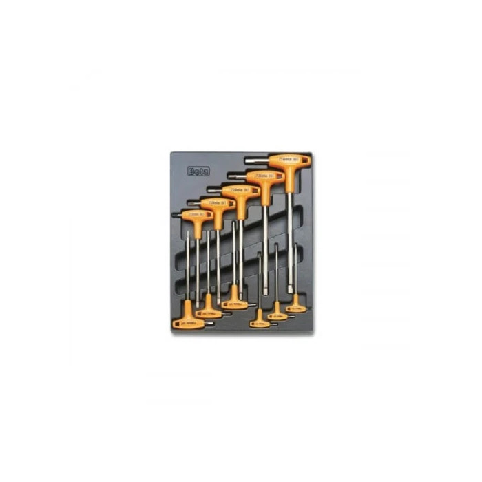 Комплект инструменти в пластмасова тава включва шестограми с дръжка. Основно се използва за професионална употреба. Комплекта е много удобен и компактен и лесно се прибира в кутия или куфар за инструменти.