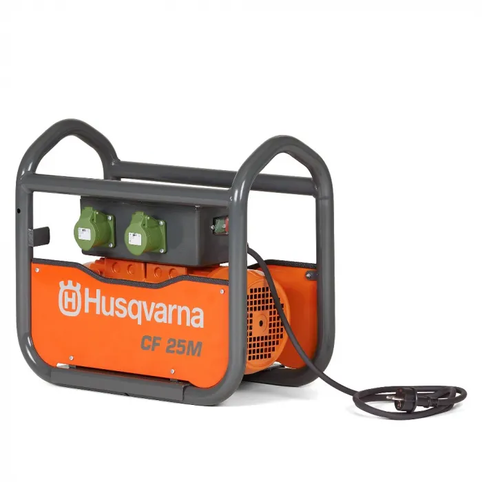 Задвижка за вибратор за бетон високочестотна Husqvarna Construction CF 11 M е преобразувател на честота с електрическо захранване, който ви позволява да включите вашата бетонна вибрационна система навсякъде. Преобразувателят е снабден с един до четири изхода за захранване на AX и Vibrastar 42 Volt / 200 Hz електрически системи. Осигурява стабилен изход, когато е свързан към основния контакт - 1-фазен или 3-фазен, в зависимост от модела.