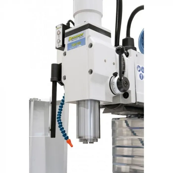 Инструменталната фреза BERNARDO TRM 900 е с цифрово отчитане по три оси и е подходяща за обработка на детайли от ниска до средна трудност. Стандартната окомплектовка позволява хоризонтално, вертикално фрезоване и фрезоване в наклонено положение. Основно се използва при производството на инструменти, отливки и други подобни. Машината е окомплектована с ръчно, автоматично и бързо подаване по трите оси. Серийно е окомплектована с хидравличен инструмент за захващане с цел бърза смяна на детайла, има вертикална захващаща площ с 3 Т-канала позволяваща захващане на работната маса, а универсалната накланяща се маса позволява обработка на много големи детайли. Устройството за управление на скоростите на вала е удобно разположено на рамото на машината. Фрезата има големи водачи тип "лястовича опашка" по ос X-, Y-, и правоъгълно водене по Z-, като скоростта на подаване се регулира от честотен инвертор. Основните предимства на модела са централно eлектрическо смазване на водачите, въртяща се фрезова глава за хоризонтално фрезоване и солидна чугунена конструкция за висока прецизност и минимални вибрации.