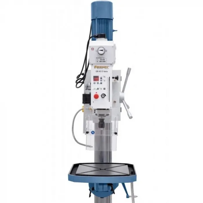 Колонната бормашина BERNARDO GB 40 S Vario се използва в сервизи за ремонт и в машиностроенето. С променлива скорост идеална за настройка на желаната скорост на рязане. Бормашината е с вграден цифров дисплей, който показва скоростта и дълбочината на пробиване. Масата е изработена от чугун с въртяща се опорна повърхност. Стабилната и заземена стоманена колона е проектирана за високи натоварвания.