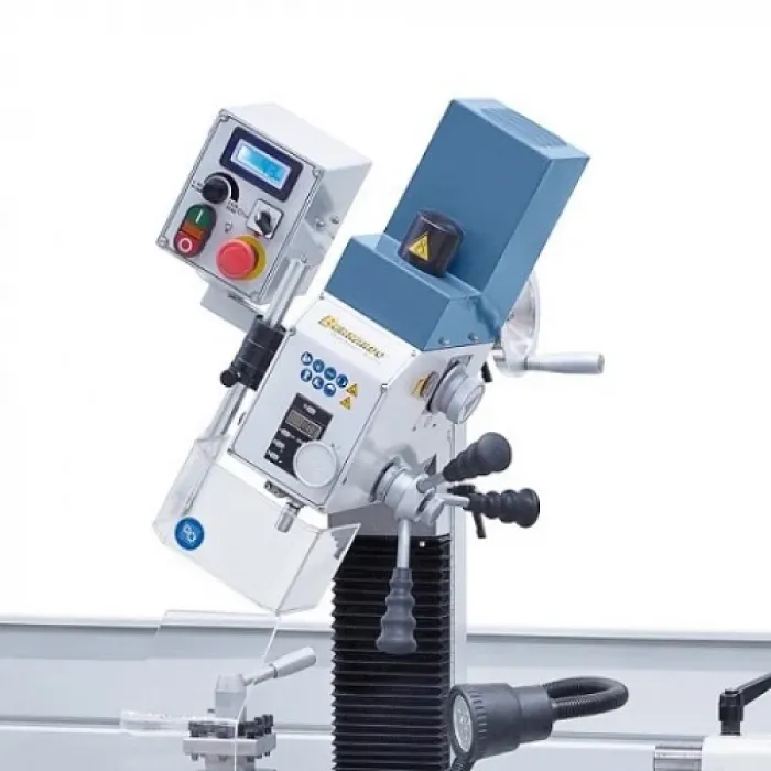 Proficenter 880 G Vario е комбинирана машина със стандартен честотен инвертор DELTA, което води до висок въртящ момент в диапазона на по-ниските скорости и почти постоянната скорост при големи натоварвания. С нея може да пробивате и фрезовате. Предлага се с цифров дисплей за хода и скоростта на фрезовата глава, и с голям отвор на шпиндела. Същата се накланя на двете страни, което позволява ъглово пробиване и фрезоване. Машината е подходяща за обработка на стомана, цветни метали и пластмаси. Стойката не е включена в цената, а се закупува отделно.