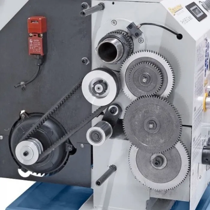Окомплектовка 2-осен цифров дисплей ES-12 V с LCD дисплей, тричелюстен патронник DK11-160 мм / D4, четворен държач за инструменти, предпазител на патронника, зъбни колела, неподвижни центрове, предпазител за супорта, цифрово отчитане на оборотите, затягащ винт MT 2 / B 16, пробивен патронник 1 - 13 мм / В 16, LED светлина, инструменти
