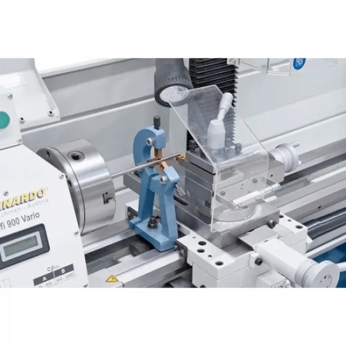 Окомплектовка 2-осен цифров дисплей ES-12 V с LCD дисплей, тричелюстен патронник DK11-160 мм / D4, четворен държач за инструменти, предпазител на патронника, зъбни колела, неподвижни центрове, предпазител за супорта, цифрово отчитане на оборотите, затягащ винт MT 2 / B 16, пробивен патронник 1 - 13 мм / В 16, LED светлина, инструменти