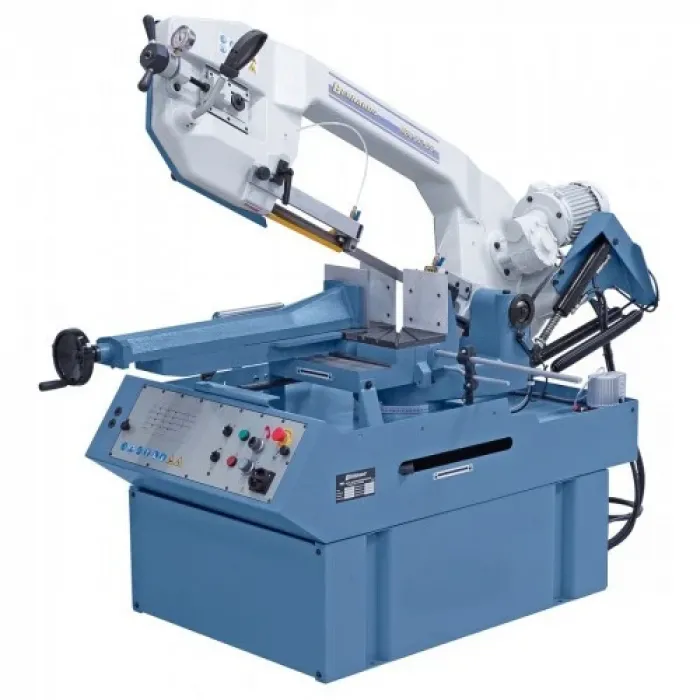 Окомплектовка отрезна лента, ограничител за рязане, стойка, манометър за натягането на лентата, водач за отрезна лента с карбидни пластини, хидравлично бързозатягащо менгеме, охлаждащо устройство, хидравлика за спускане, предпазен прекъсвач за мотора, автоматично изключване след приключване на работа