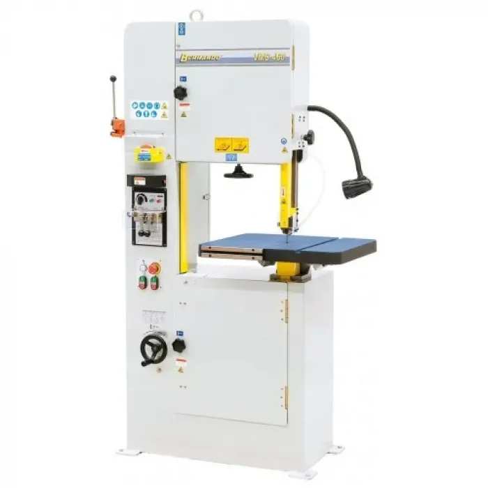 Лентоотрезната машина BERNARDO VMS 460 има масивна конструкция и висока прецизност при рязане на детайли с неправилни форми. Използва се за професионално рязане на материали като пластмаса, стомана и цветни метали. Основните характеристики на машината са безстепенното регулиране на скоростта на рязане и солидната чугунена маса която се накланя на 15° в 4 посоки за постигане на необходимата форма на детайла. Тя е със здрава чугунена конструкция с голяма площ осигурявяща безопастна експлоатация.