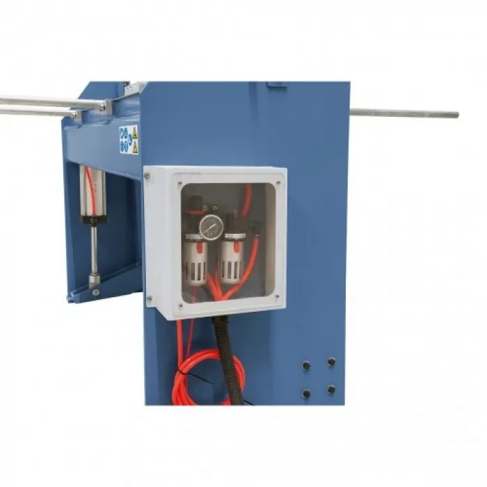BERNARDO PTS 1270 x 1,2 е полупрофесионална, мощна и прецизна пневматична листова гилотина, която е изработена от най-висококачествени материали. Работната ширина на гилотината е 1270 mm, а дебелина на листа, който може да реже е 1.2 mm. Предназначена за рязане на различни материали като листова стомана, месинг, алуминий, мед и др. Снабдена с педал за по-лесно рязане и оптимално позициониране на листа. Снабдена с автоматичен механизъм за фиксиране на обработваната ламарина и два пневматични цилиндъра.