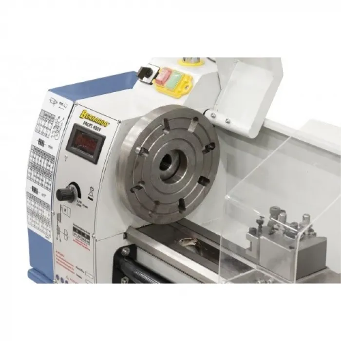 BERNARDO Profi 400V е струг за метал, който се характеризира с плавно регулиране на скоростта и цифров дисплей. Подходящ за обработка на стомана, цветни метали и пластмаса. Машината има широка гама от приложения и компактна конструкция. Стойката не е включена в цената на машината.