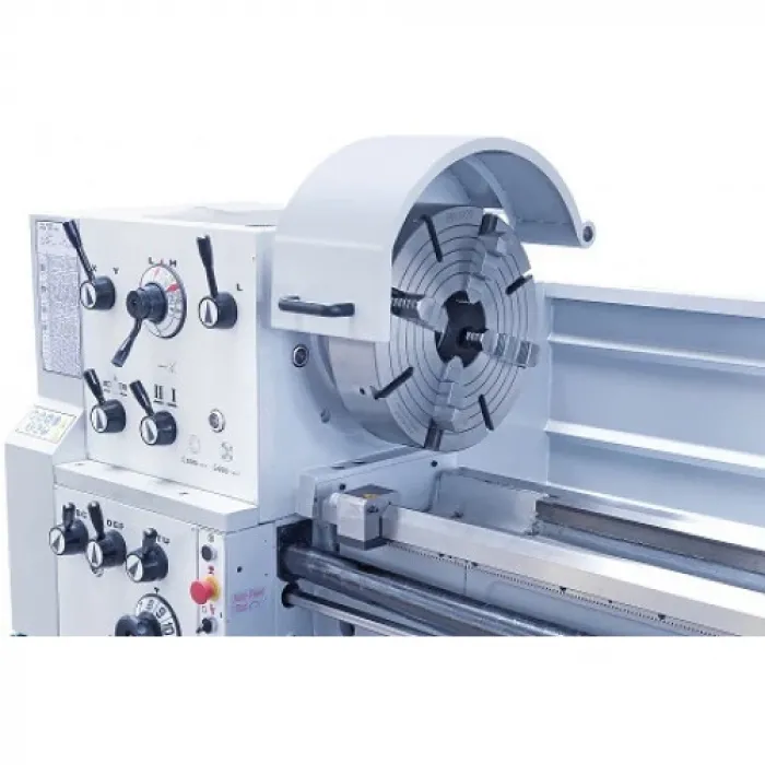 Окомплектовка триосно цифрово отчитане с LCD дисплей ES-12 V, тричелюстен патронник PS3 - 315 mm / D8, планшайба 450 mm, неподвижен люнет 180 mm, подвижен люнет 120 mm, 2 броя неподвижен център, магнитна спирачка за мотора, стоп педал, охлаждащо устройство, държач за инструменти с 4 вложки, предпазител за държача за инструмени, предпазен съединител, LED работно осветление, зъбни колела, преходна втулка, циферблата за стъпката на резбата, предпазител на супорта, инструменти