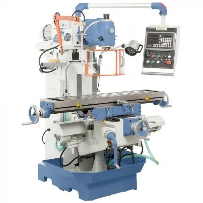 Универсалната фреза за метал BERNARDO UWF 110 е подходяща за леки и средни натоварвания. Тя е изключително подходяща за малки и средни ремонтни работилници. Фрезовата и глава е с възможност за настройка ъгъла на завъртане. Контролния панел за управление е удобно разположен на въртящо рамо. Масата се измества механично по оси X/Y и има Т-канали за добро охлаждане. Цифровото отчитане става по три оси и именно затова тази фреза е високопроизводителна. Машината има стабилна чугунена основа за работа без вибрации.