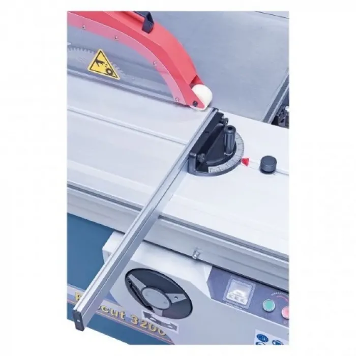 Окомплектовка цифрова индикация за височината на рязане, ексцентричен държач, предпазител за диска, удължаване на масата, изтеглящ се телескопичен линеал, надлъжен изключвател, ролкова квадратна маса, лост за избутване на детайла, подрязващо устройство с независим двигател, инструменти
