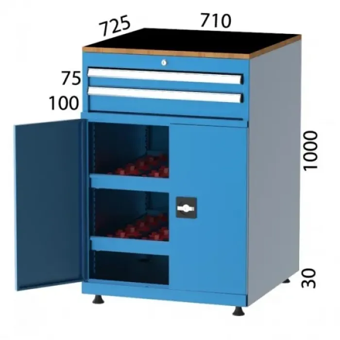 Предлагаме на вашето внимание идеален шкаф за инструменти. Шкафът е много компактен, не заема много място и е снабден с 2 чекмеджетави 2 плъзгащи CNC рафта.