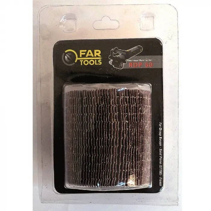 Ламелна ролка за ролкова шлайф машина FARTOOLS 110878 / А80 е с едрина на зърното А80, диаметър 60 мм и ширина 60 мм. Специално преназначен за реноватор RDP 60. Дизайна на този модел шлифовъчна ролка 60 мм е съобразен изцяло за бързина при смяна от един към друг шлифовъчен консуматив