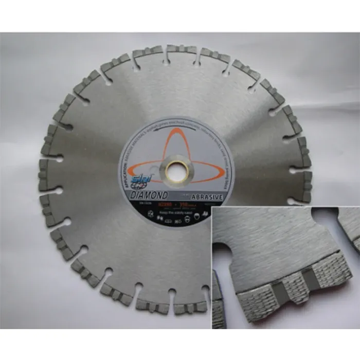 - Диамантен диск с подредени диаманти за мокро рязане на абразивни материали - асфалт, пресен бетон, пясъчник, огнеупорни тухли и др.