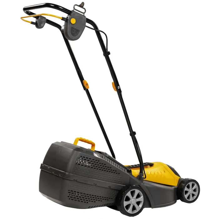 Тази косачка има електрически мотор 230V 1200W, който се стартира лесно с натискането на един бутон. С електрическа косачка получавате по-ниско тегло, по-малко шум, лесна работа и минимална поддръжка в сравнение с бензиновия модел - пластмасовият режещ щит също помага да се поддържа теглото на косачката само до 7,5 кг.