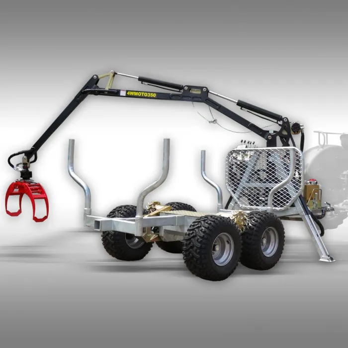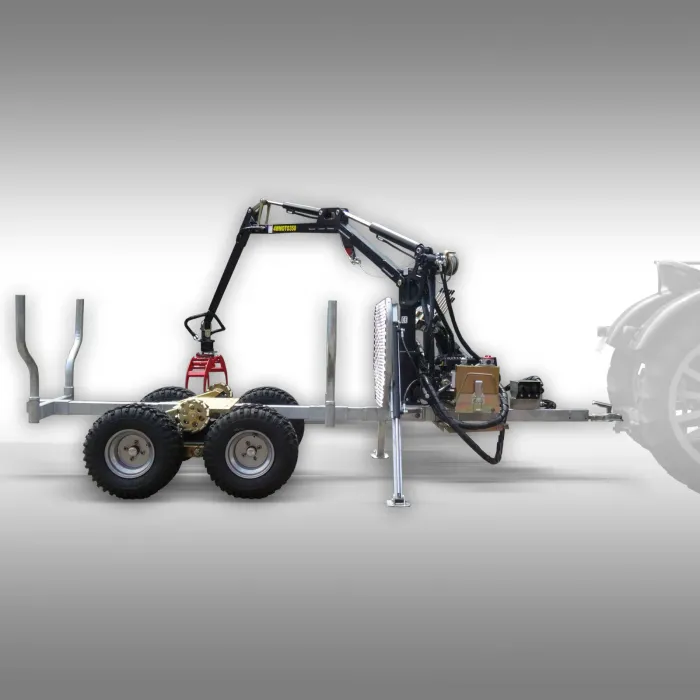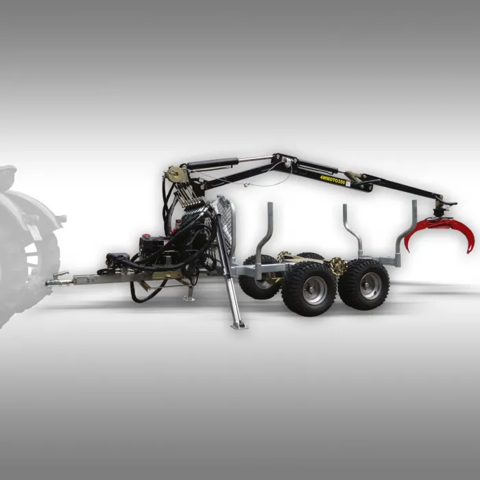 Ремаркето за дървен материал е оборудвано с хидравлично задвижване на четирите колела, което може да се включва и изключва, за да се гарантира, че може да се движи с лекота дори и на много неравен терен. Задвижването на четирите колела може да се включи електрически чрез магнитен клапан.