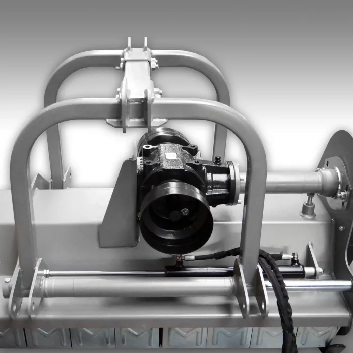 Косачният агрегат също има хидравлична странична ходова функция от 250 мм и може да се премества както наляво, така и надясно. За тази функция ви е необходима хидравлична верига за управление на вашия трактор, тъй като косачният агрегат има хидравличен цилиндър с двойно действие за тази цел.