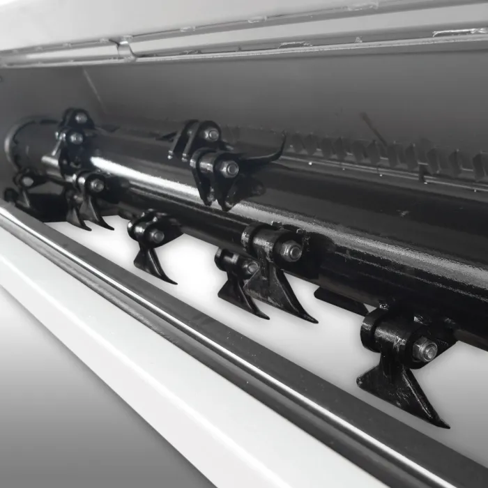 22-те специално закалени, 1,2 кг остриета за чук, подредени на двойно спирален задвижващ вал, нарязват изрезките до минимален размер. Дори много високи тревни, храсталаци или подобни на слама изрезки не са проблем за тази косачка!