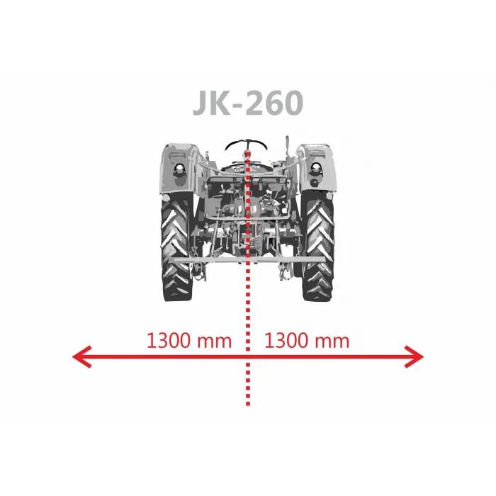 Мулчиращата косачка Jansen JK-260 допълнително има задвижваща ролка и скоростна кутия с свободен ход. Окачените вериги в предната част на косачката предотвратяват изтичането на камъни.