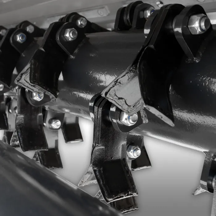 Специално закалените 112-остриета, раздробени изрезки до минимален размер. Дори много високи тревни, храсталаци или подобни на слама изрезки не са проблем за тази косачка!