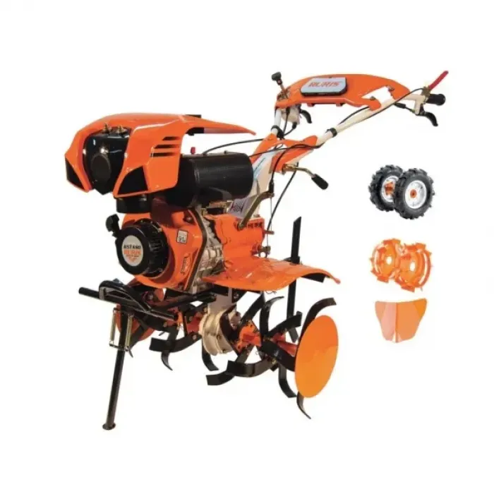 Бензинова мотофреза RURIS 651KSD се използва върху всички видове почва поради здравината на материала на корпуса. Машината е идеална за обработка на почви овощни градини и малки дворове. Моторната фреза е оборудван с дизелов двигател с мощност 6 к.с. Култиваторът RURIS 651 KSD е надеждна и издръжлива машина, като в същото време е лесна за маневриране поради 3 -те скорости (2 напред + 1 назад), но дръжката се регулира на 2 оси (нагоре / надолу - отляво надясно). RURIS 651 KSD е оборудван с конусни зъбни колела в маслената баня. Корпусът на трансмисията на култиватора е изработен от чугун, което му придава висока издръжливост. Мотофрезата има максимална работна ширина 1000 мм и дълбочина между 100 - 200 мм, което представлява надежден съюзник за тези, които искат да обработват почвата просто и ефективно.