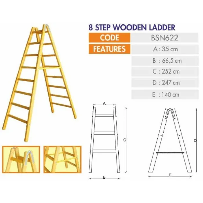 Двойна дървена стълба 8 стъпала PSDS няма наличност!
