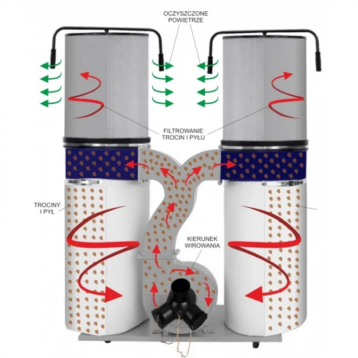 Ефективно, мобилно и безотказно извличане с постоянни параметри на извличане. Възможност за свързване на три машини едновременно. Той е идеален за различни видове металорежещи машини и дърводелски машини, като триони за плъзгаща се маса, фрези и ренде.