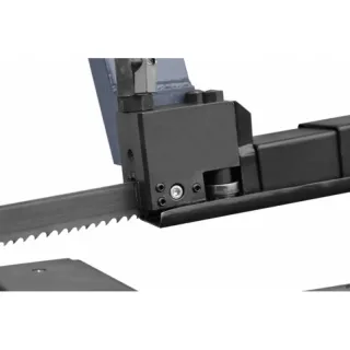Резачката, благодарение на използването на режеща лента с ширина 27 мм, ви позволява да извършвате многосерийни разфасовки на профили и цели елементи. Новият модел използва по-мощен трифазен двигател с допълнителна защита, ново поколение необслужваем хидравличен цилиндър, течно охлаждане в затворена система с по-голяма вана. Метален лентов трион с CE позволява подрязване в равнина, перпендикулярна на оста на материала, който се реже, или под произволен ъгъл между 0 и +50 градуса. Отрязаният елемент може да се подава ръчно или чрез всяко устройство за подаване. Захранването по време на рязане се извършва гравитачно на принципа на масления поток в двукамерен хидравличен цилиндър.