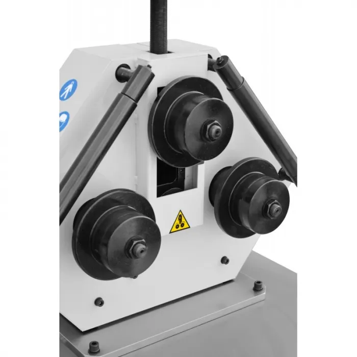 Електрическа огъваща машина за огъване на профили и тръби. Огъването ви позволява да работите както вертикално, така и хоризонтално. Машината е оборудвана с механично регулируемо налягане на горната ролка. Идеалното решение за огъване на дъги, кръгове и спирали.