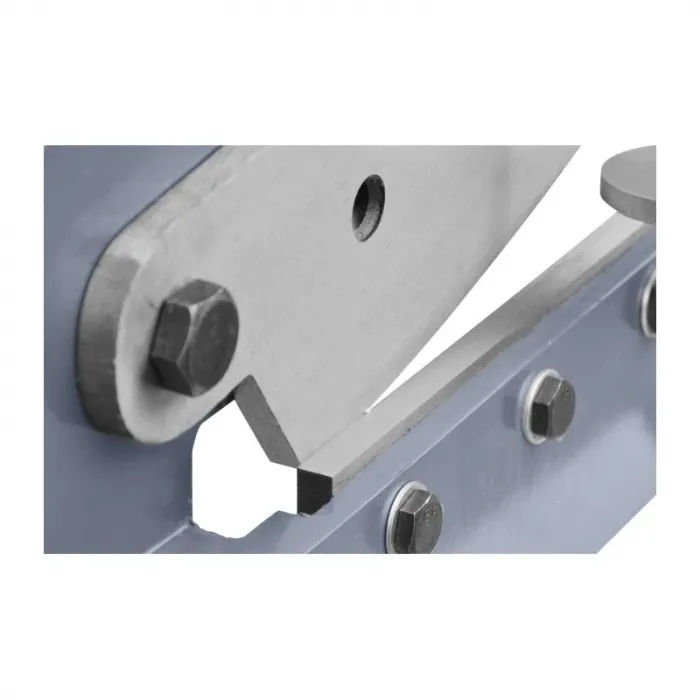 Ръчни ножици за рязане на ламарина, плоски пръти, стоманени пръти. Изработени от стоманени плочи, те се характеризират с висока надеждност и простота на работа. Универсални ножици за рязане на ламарина, идеално решение за ключарски работилници и строителни обекти. Благодарение на тяхната изгодна геометрия, те позволяват рязане без използване на голяма сила. Сигурно закрепване на материала благодарение на използването на регулируема притискаща. Корпусът на уреда е изработен от стабилни стоманени плочи. Специалната форма улеснява преместването на ламарината. Надеждно изпълнение на операциите по контура благодарение на добрата видимост на ножа.