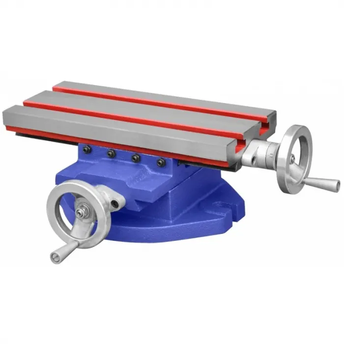Напречната маса е солидно изработена от висококачествени материали. Идеално поддържа работа върху бормашини, фрези и др., благодарение на което получаваме прецизно позициониране при пробиване или пробиване. Допълнително предимство на масата е лентова скала, която улеснява постоянно наблюдение на позицията на масата по оста X, Y