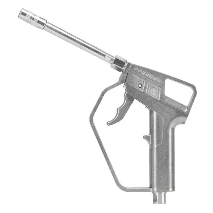 Пистолет за гресиране, с твърд удължител и 4 челюстен накрайник, комплект за гресиращи системи, G1/8", 400Bar, подходящ за пневматични такламити, за директно гресиране, и пълнене на системи за централно гресиране с налягане на помпата до 400 Bar / 900 ml/min.