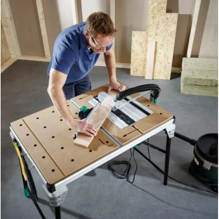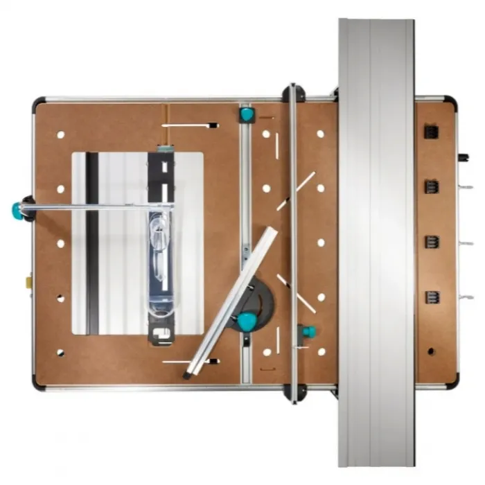 Многофункционалната маса съчетава шест функции в един продукт. Тъй като може да се използва като работна станция, циркуляр, направляван циркуляр, маса за прободен трион, маса за циркулярен трион и маса за фрезоване с допълнителния аксесоар, MASTER cut 2500 е идеално подходящ за всички занаяти, свързани с вътрешни работи. Благодарение на подвижния нож за зарязване, той е една от малкото маси за машини, които могат да се използват и с циркуляри без нож за рязане. Машинната плоча е регулируема по височина, което ви предлага плосък преход към работния плот дори при тежки машини. Когато се използва като циркуляр, успоредният ограничител позволява направлявани рязания до ширина на рязане от 570 mm и дължина на рязане до 740 mm. Ъгловият ограничител е снабден с пружинно направлявани компенсационни и плъзгащи елементи. Позволява удобна серия от ъглови срезове до 120°. Масата на машината може да побере дори плоскости от масивно дърво с лекота благодарение на товароносимост от 120 кг. След като работата приключи, MASTER cut 2500 може да се сгъва компактно и да се съхранява. Само с един продукт вие сте надеждно и ефективно подготвени за безброй предизвикателства в дома.