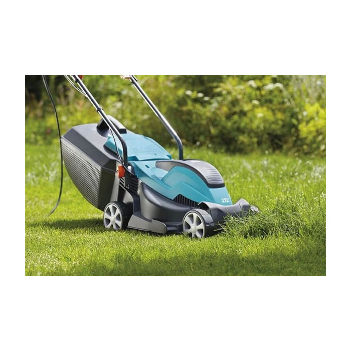 Eлектрическа колесна коса Gardena PowerMax 32 1.2 kW, 32 см разполага с мощен двигател, подпомагащ ефективното и бързо действие. Електрическата косачка перфектно коси и събира тревата в допълнителен кош. Плюс е регулирането на височината на косене. Има общо 5 позиции м/у 20 и 60 мм. Чрез сгъваемата ръкохватка може лесно да транспортирате косачката. Добавено е малко прозорче на коша за трева, показващо необходимостта от изпразването му. Задните колела подпомагат по-голямата маневреност и преминаване през трудно достъпни пространства. Косата може да се използва при различни атмосферни условия, дори при мокра морава. PowerPlus двигателя е изключително надежден, а задвижващата се зъбна предавка с голям въртящ момент подпомага за качественото косене на дълги площи. Покритата ширина на рязане е 32 см.
