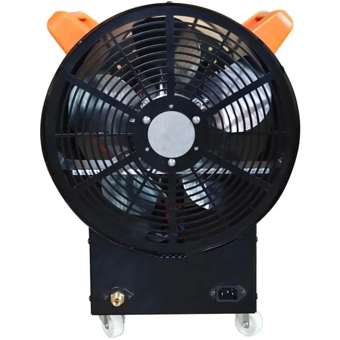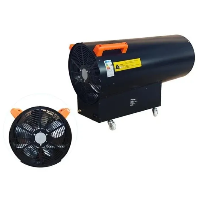 Това устройство, работещо с пропан-бутан, произвежда чист, топъл въздух. Процесът на горене протича в отворена горивна камера, като въздухът, засмукан от вентилатора, се нагрява и след това се изхвърля от нагревателя. Не е необходим комин; просто е необходимо подаване на въздух, за да се осигури правилно горене.