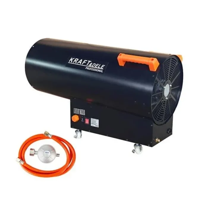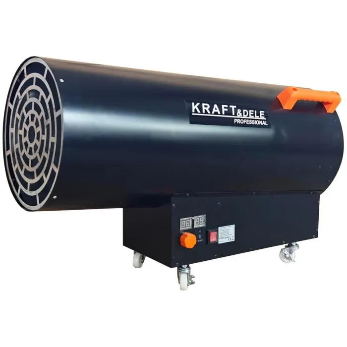 Този газов отоплител с мощност 100 kW на пропан-бутан (LPG) е с вграден термостат с контрол на температурата. Нагревателят работи автоматично, в зависимост от зададената температура. Полските отоплителни уреди Kraft & Dele са сред най-добрите устройства на пазара в своя ценови диапазон. Високата им ефективност и максималната икономия на гориво (газ) се осигуряват от специално проектирана горивна камера.