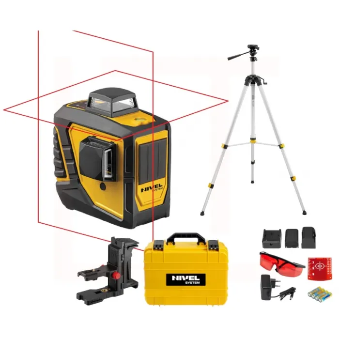 Мултифункционалния нивелир е с многозадачен 2D - 360 ° кръстосан лазер. Оборудването поставя идеално равни опорни линии (хоризонтални и вертикални) на стената, които поддържат всички довършителни и общи строителни работи. Лазерът има две лазерни глави, благодарение на които потребителят може да работи с две лазерни равнини - в диапазона 360° всяка. Като показвате тези равнини едновременно, можете да зададете прав ъгъл. Тази опция е полезна, наред с други в строителни и довършителни работи (напр. облицовка). Заключването на компенсатора позволява инструментът да бъде наклонен и да използва наклонени линии. Вградените резби 1/4 "и 5/8" позволяват надеждно и стабилно монтиране на инструмента върху статив, адаптер или лазерен рафт. Подсилените гумени части на корпуса на лазера предпазват от повреда при удари и сътресения.