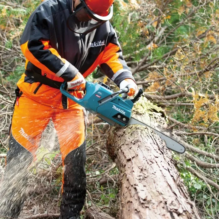Акумулаторния верижен трион е оборудван с безчетков двигател. Отлично балансирана машина, която се отличава със своята ергономичност и тегло. Наличие на спирачка SafetyMatic, която незабавно спира веригата при откат. Голям визьор на масления резервоар, който позволява на потребителя по-лесно да проверява нивото на маслото. Опъване на веригата без помощта на инструмент. Индикатор за състоянието на акумулаторната батерия. Удобната предна ръкохватка и ергономичният корпус на акумулаторния верижен трион идеално пасват на ръцете на потребителя и осигуряват по-голям комфорт и ефективност по време на работа с инструмента. WetGuard и IPX4 - отлична водоустойчивост.