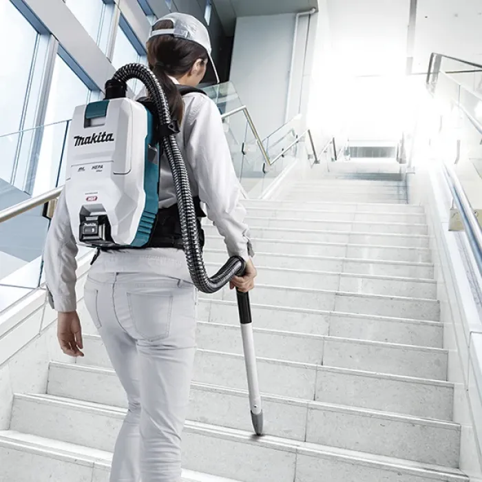 Прахосмукачката включва функция за памет на режима, позволяващ стартиране със същата мощност на засмукване. Разполага с вградена светодиодна подсветка, която може да се включва и изключва с отделен превключвател. Когато торбичката за прах не е поставена, предният капак не се затваря напълно. Прахосмукачката е оборудвана със самар за носене на гръб, който прави прахосмукачката подходяща за ограничени пространства. Ергономичният колан осигурява равномерно разпределение на тежестта. Телескопичната тръба позволява регулиране на височината на ръкохватката в съответствие с височината на работещия. Професионалната акумулаторна гръбна прахосмукачка Makita VC008GZ се захранва от батерия с напрежение 40 V, серия XGT. Максималният дебит е 2.4 м³/мин, а мощността на засмукване - 18 kPa. Обемът на торбата за прах е 2 л.