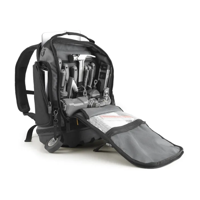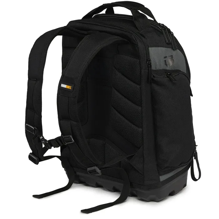 Раница за инструменти е предназначена за лесно транспортиране на множество инструменти около работната площадка, лесна за използване с 31 джоба и примки с отворени и покрити вътрешни джобове за лесен достъп и идентификация на инструментите. Раницата за инструменти разполага с дишащи подплатени презрамки, здрава офроуд основа за най-трудните терени, двойни дръжки, както и джоб за лаптоп, който се побира (33cm-43cm лаптопи) за защитено съхранение на лаптопи и таблети. Комбинацията от издръжлива конструкция и функционалност на раницата за инструменти ToughBuilt™ ще реши проблемите ви със съхранение около работната площадка.