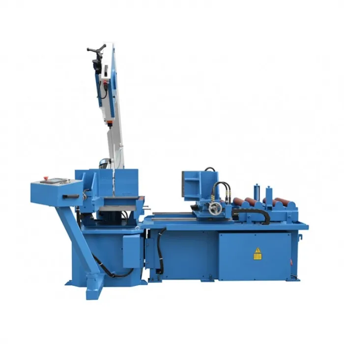 Автоматичен лентов трион с CNC контролен панел. Този модел има възможност за рязане в диапазона 0° - 60° - в автоматичен цикъл, както и полуавтоматично в диапазона -60° - 0- + 60° - плавно регулиране на ъгъла. Автоматичният лентов трион е високоефективна машина за рязане на пръти, тръби и профили от стомана, чугун и цветни метали в автоматичен цикъл. Здравото тяло и здравата рамка на триона осигуряват отлична твърдост и изключително ниво на стабилност по време на процеса на рязане дори при най-трудната металообработка. Този модел е с разрез 0º; 30º; 45º; 60º - плавно регулиране на ъгъла.