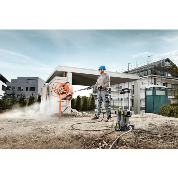 Водоструйката разполага с надеждна три-бутална аксиална помпа с месингова цилиндрова глава. Компактна, лека и много мобилна тази водоструйна машина може да се използва, както в хоризонтално, така и във вертикално положение, като това я прави изключително универсална. Включеният в окомплектовката пистолет за високо налягане EASY! Force използва силата на отката на струята с високо налягане, за да намали задържащата сила до нула. Ротационната дюза за бързо справяне с упоритите замърсявания е включена в обема на доставка на преносимата водоструйка HD 5/11 P Plus.