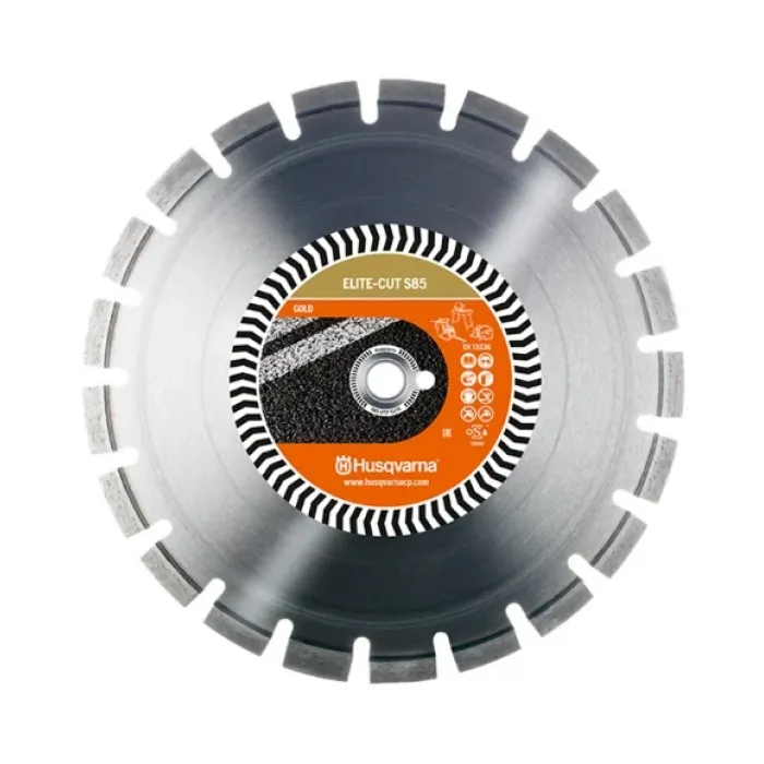 Диамантения диск е подходящ за сухо и мокро рязане на мек и твърд асфалт с фугорез. Може да се използва и за тухли, газобетон и абразиви. Диаметър 400х25.4/20.0 мм, височина на сегмента 12 мм, стандарт EN13236. Диамантен диск Husqvarna Elite-Cut S85 от серия Gold, разработена за интензивна професионална употреба.