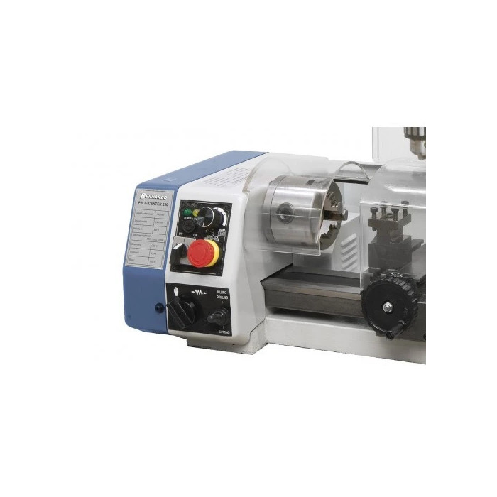 Струг за метал BERNARDO Proficenter 250 се доставя с комплект за фрезоване. Компактната му конструкция осигурява гладко движение и гарантира точни резултати, което прави този модел особено привлекателен за амбициозните производители на модели. Стругът идва с електронна система за регулиране на диска, което го прави много удобен. Контролните елементи са разположени на достъпно и удобно място и са прецизно органиизрани, улеснявайки допълнително работещия. Висококачествените лагери пък гарантират дълъг живот на машината и висока концентричност. Електронно, безстепенно регулируемо задвижване.